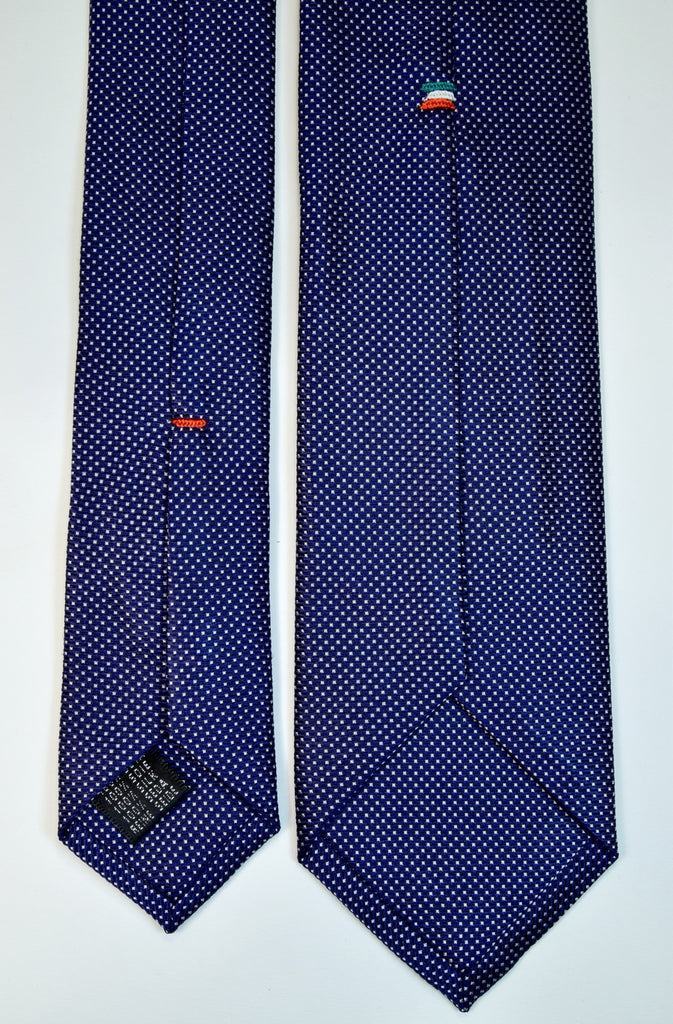 MIDNIGHT EXPRESS BLUE AND WHITE SQUARES SEVEN FOLDS SILK LIMITED EDITION NECKTIE, GEOMETRIC PATTERNS, NORMAL FABRIC WEAVE - ONLY 1 PIECE AVAILABLE ONLINE!