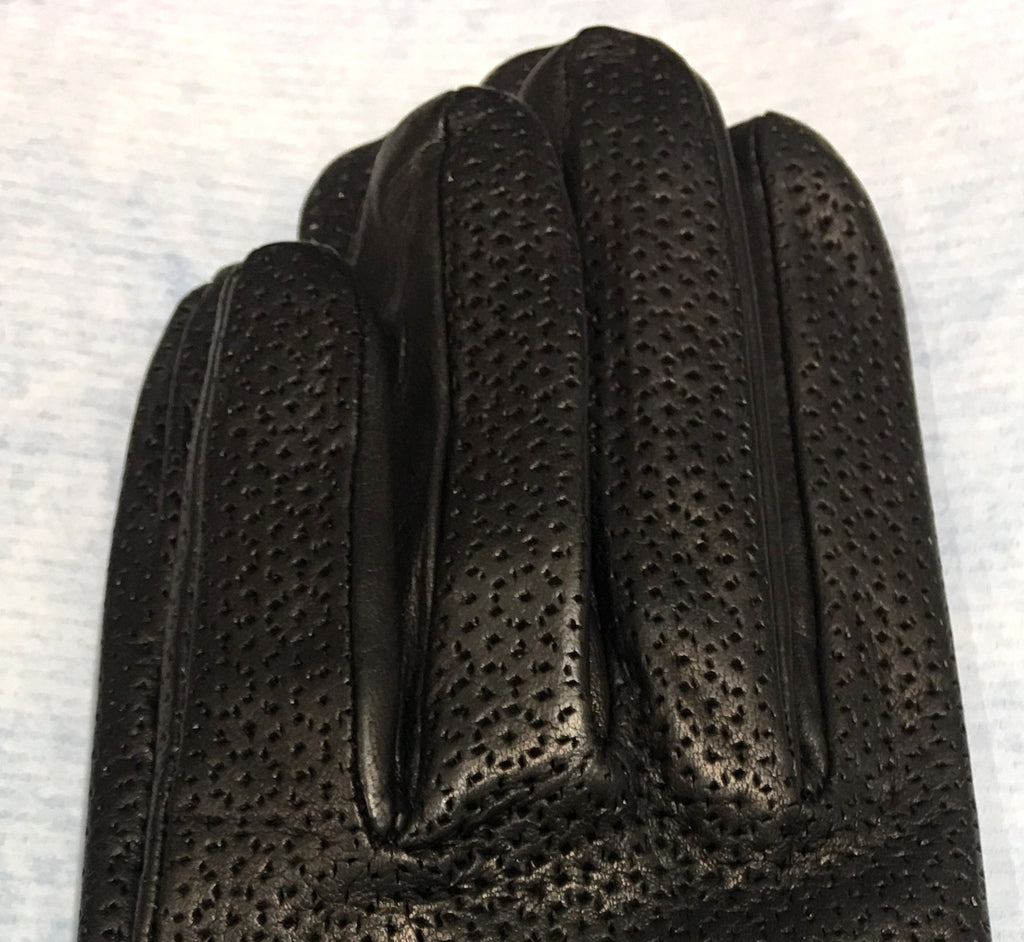 LIMITED EDITION, PERFORATED WOMEN BLACK LEATHER GLOVES WITH BOWS, SILK LINER, MADE IN ITALY