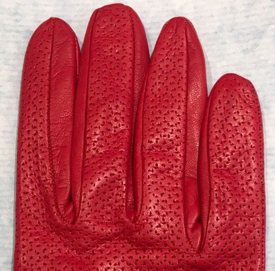 LIMITED EDITION, PERFORATED WOMEN OLD ROSE LEATHER GLOVES WITH BOWS, SILK LINER, MADE IN ITALY