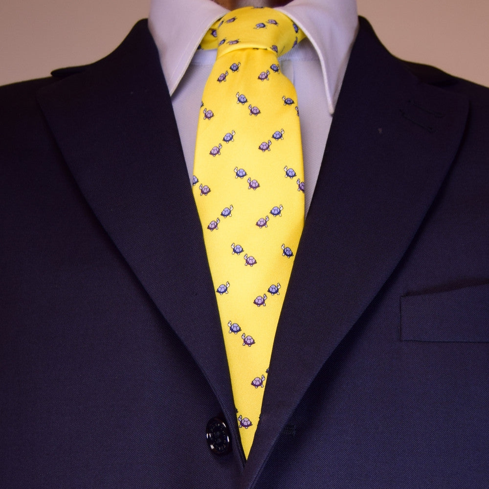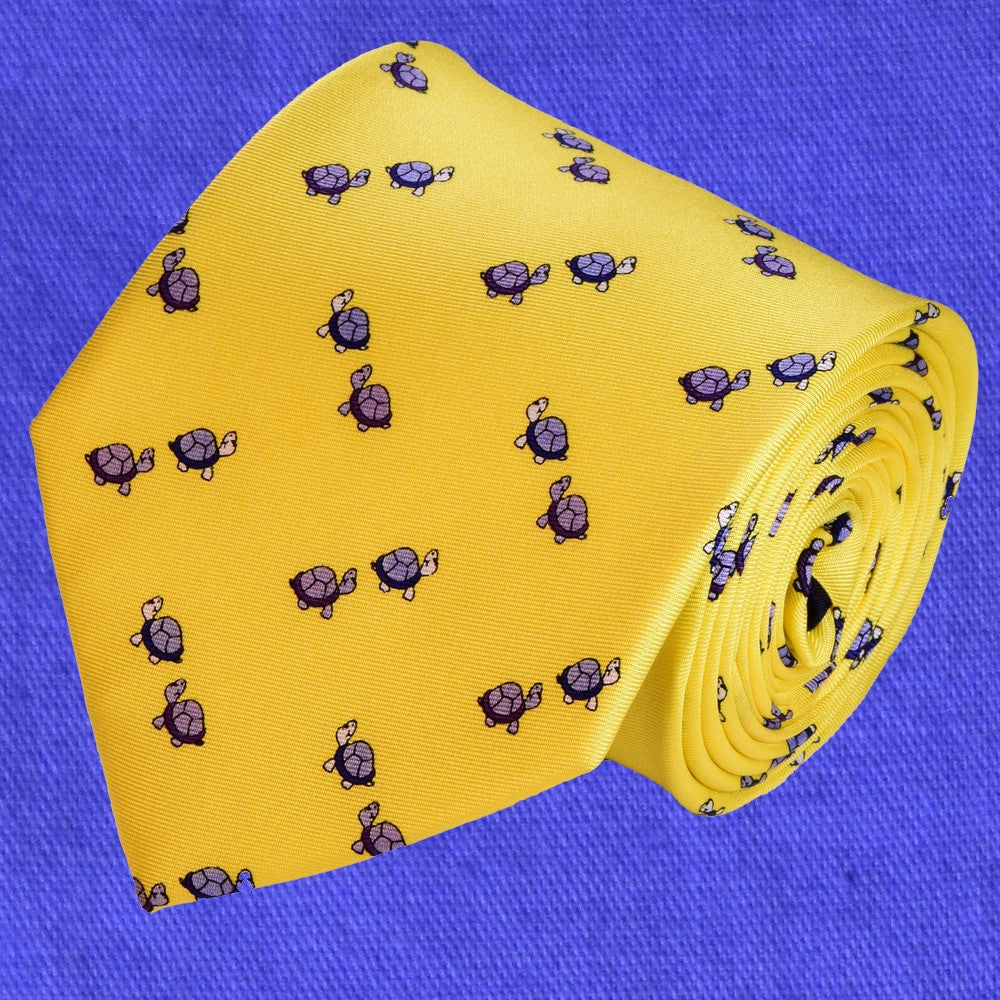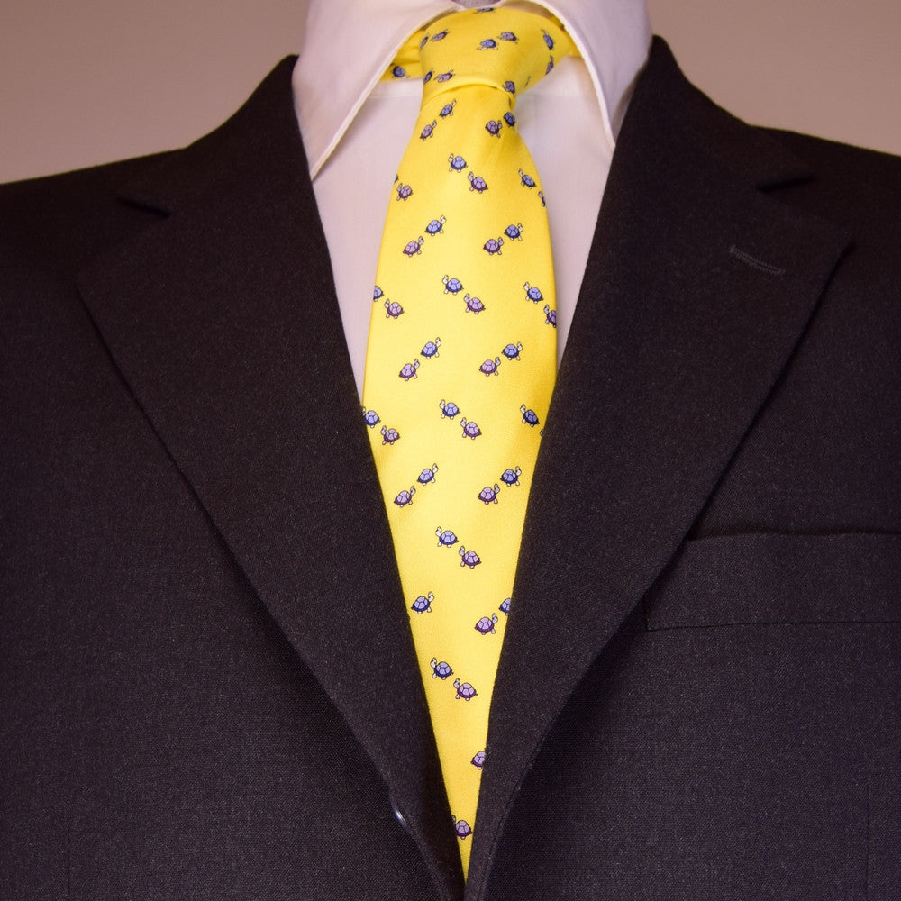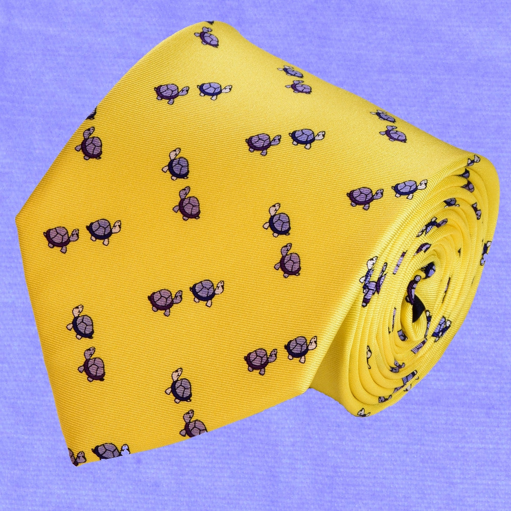 CONVERSATIONAL YELLOW TURTLES BASIC SILK NECKTIE