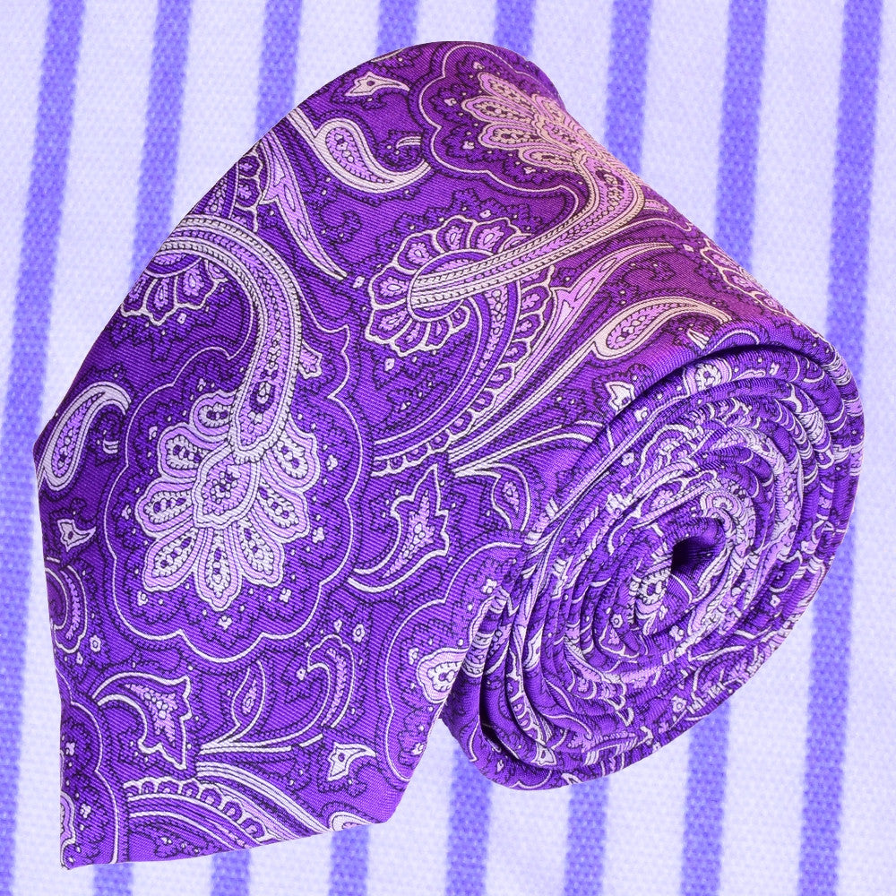HELIOTROPE-PURPLE, FLOREAL, BASIC NECKTIE MADE IN SILK