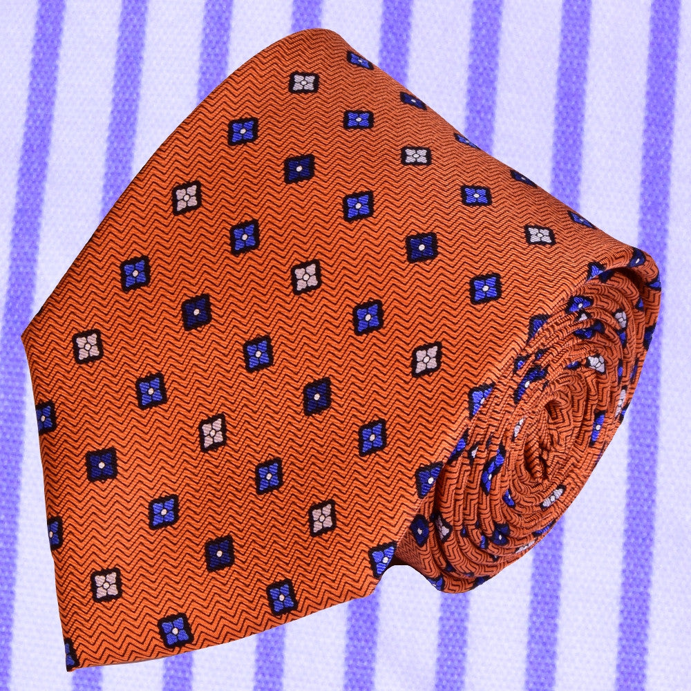 MICROPATTERNS, PUMPKIN-ORANGE, BASIC SILK NECKTIE