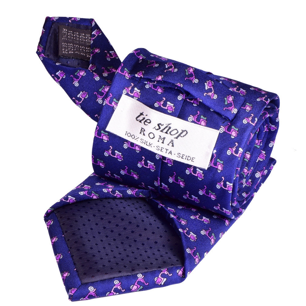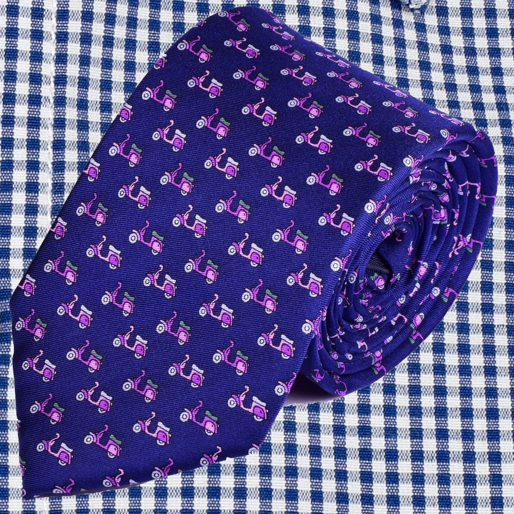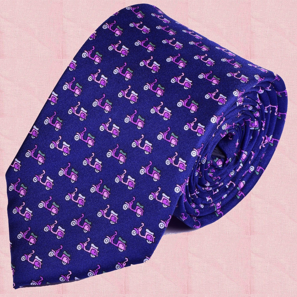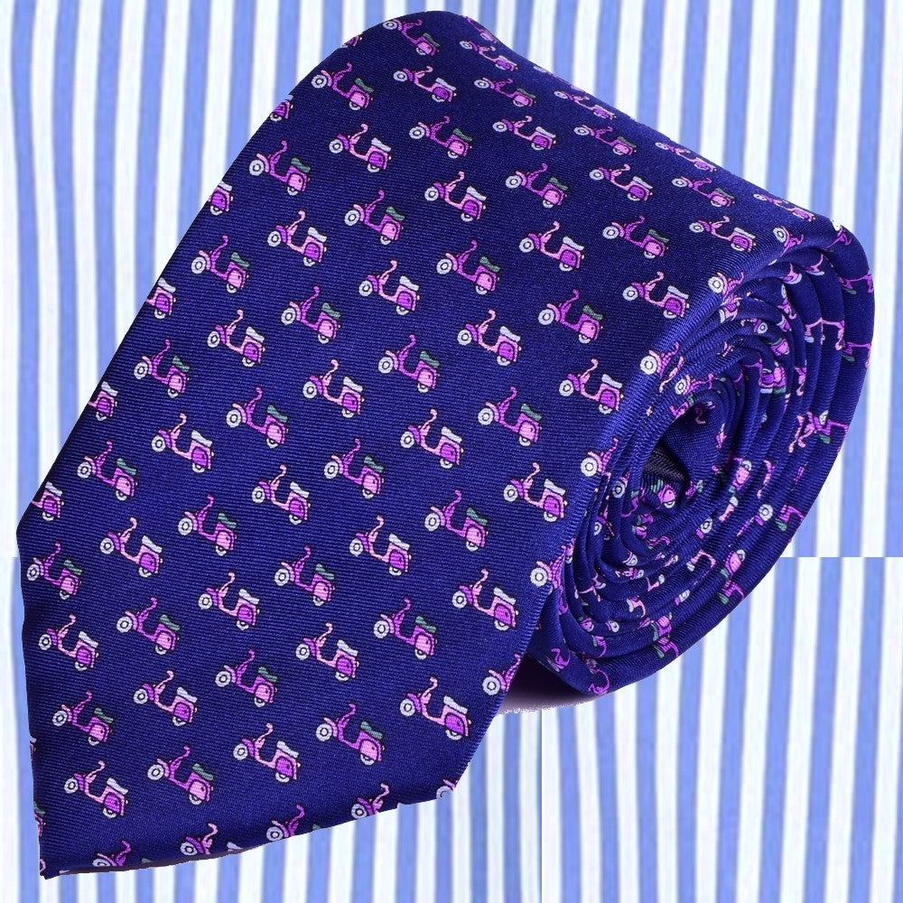 CONVERSATIONAL, NAVY-BLUE, PINK VESPAS BASIC SILK NECKTIE