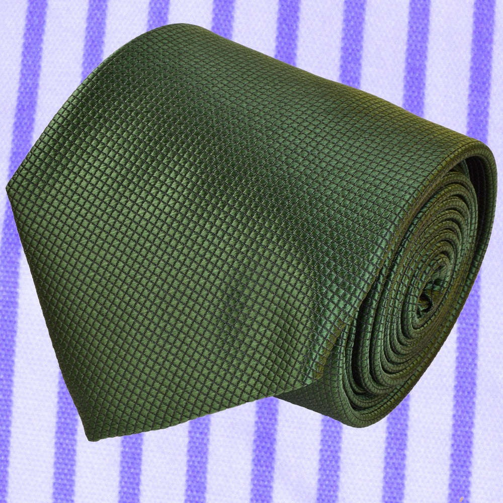 This wonderful Xanadu-green necktie will go perfectly well with white, off-white, blue, dark-blue, checkered and even striped shirts. We would suggest you wear it under a navy blue or gray jacket. Avoid black and charcoal. Perhaps dark-brown could be ok.