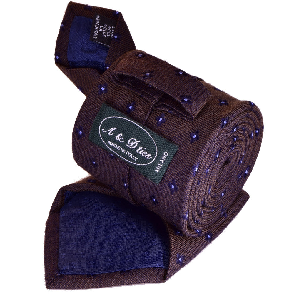 WOOL, MELANZANA-BROWN, MICROPATTERNS, WEAVED NECKTIE MADE IN ITALY