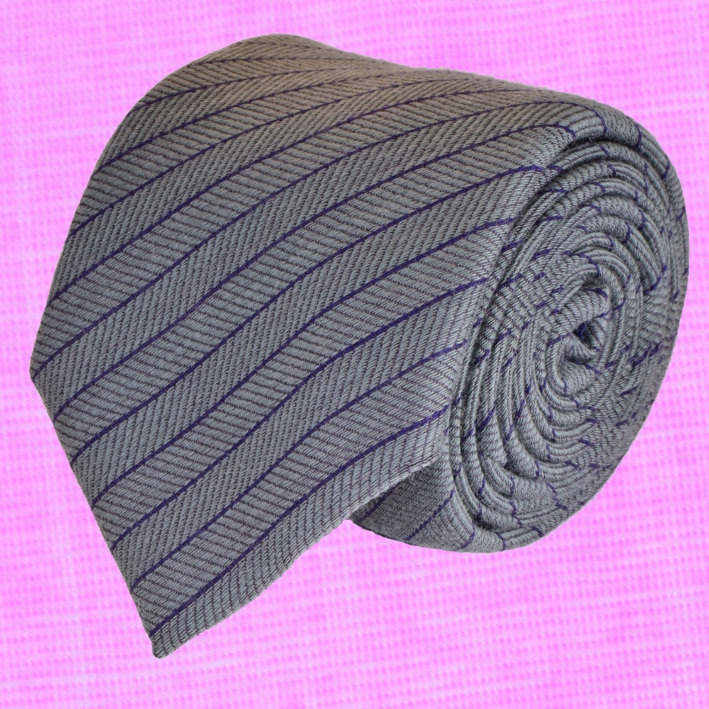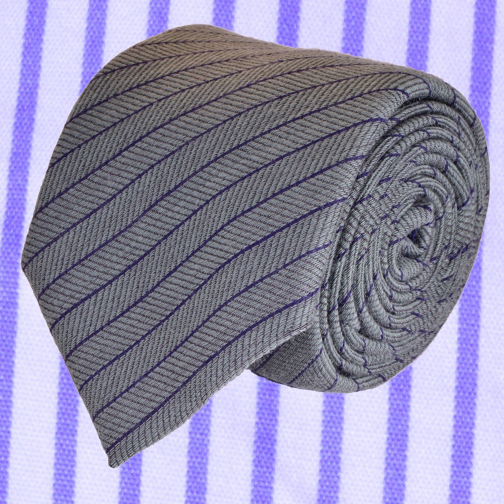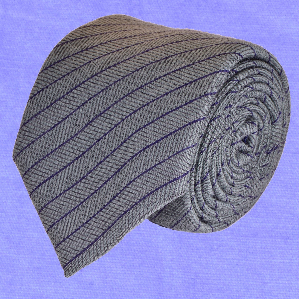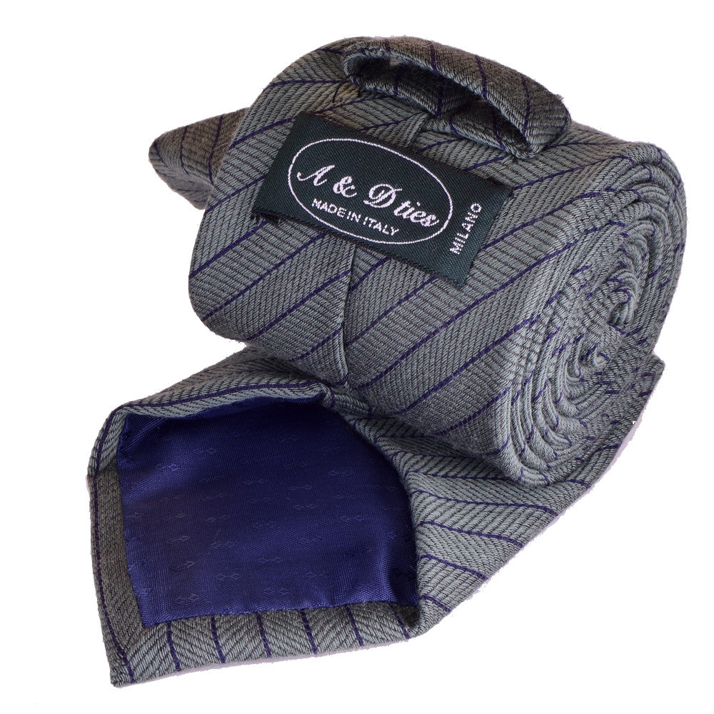 STORM-GREY WOOL REGIMENTAL NECKTIE, HANDMADE IN ITALY, TWILL FABRIC -CRAVATTA IN LANA REGIMENTAL GRIGIO TEMPESTA, FATTA A MANO IN ITALIA, TESSITURA TWILL