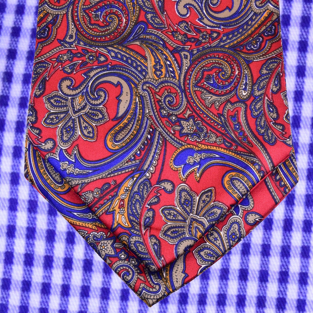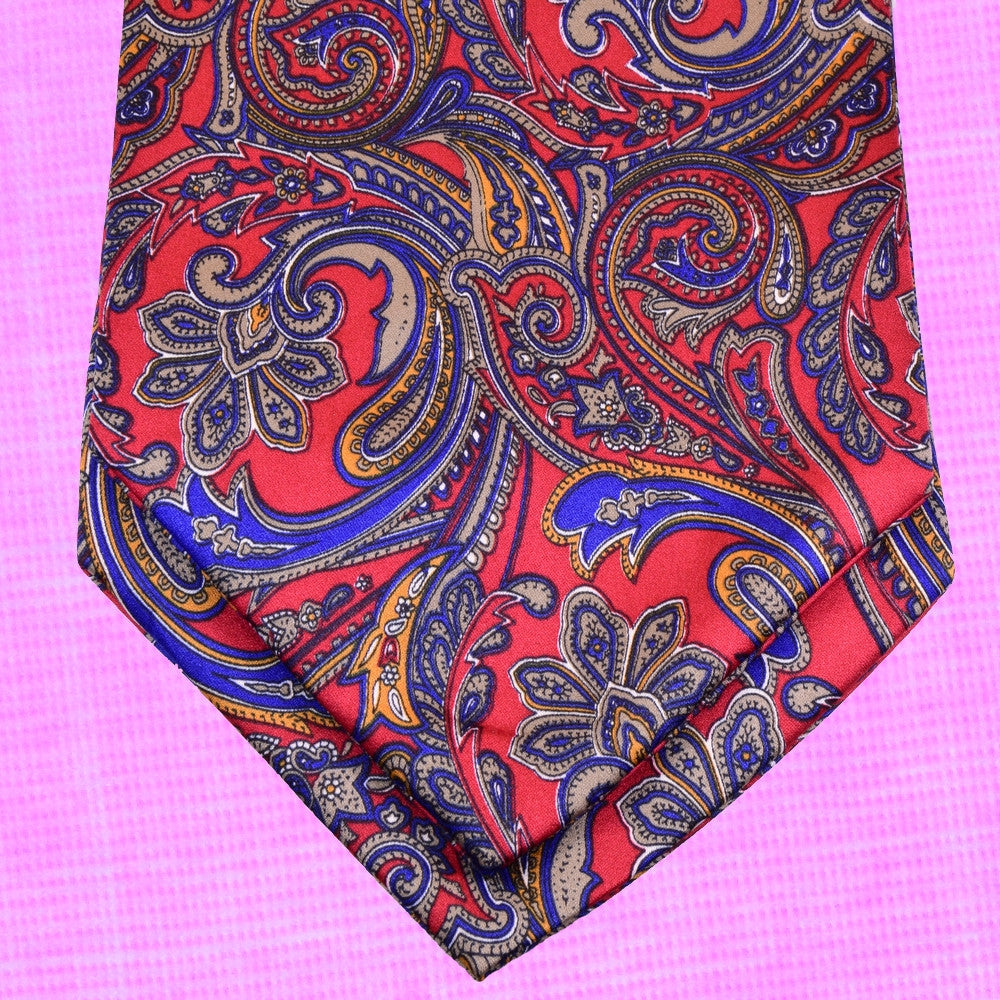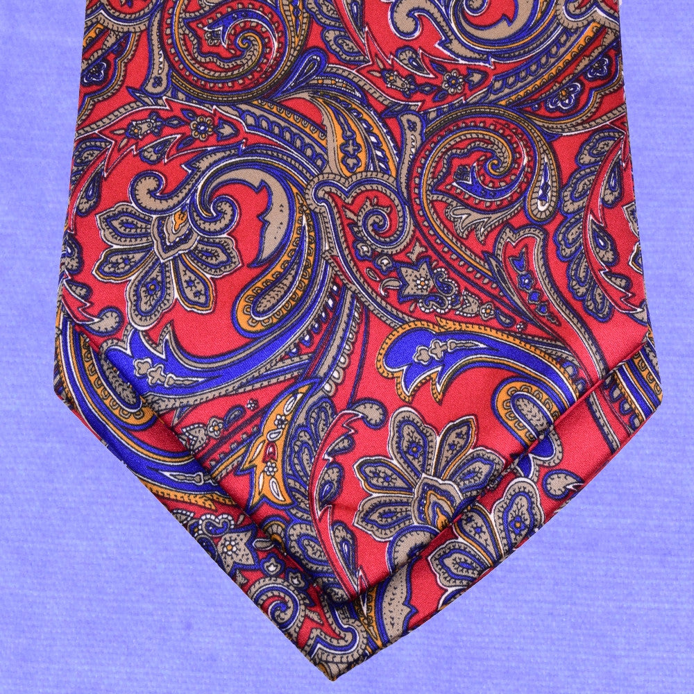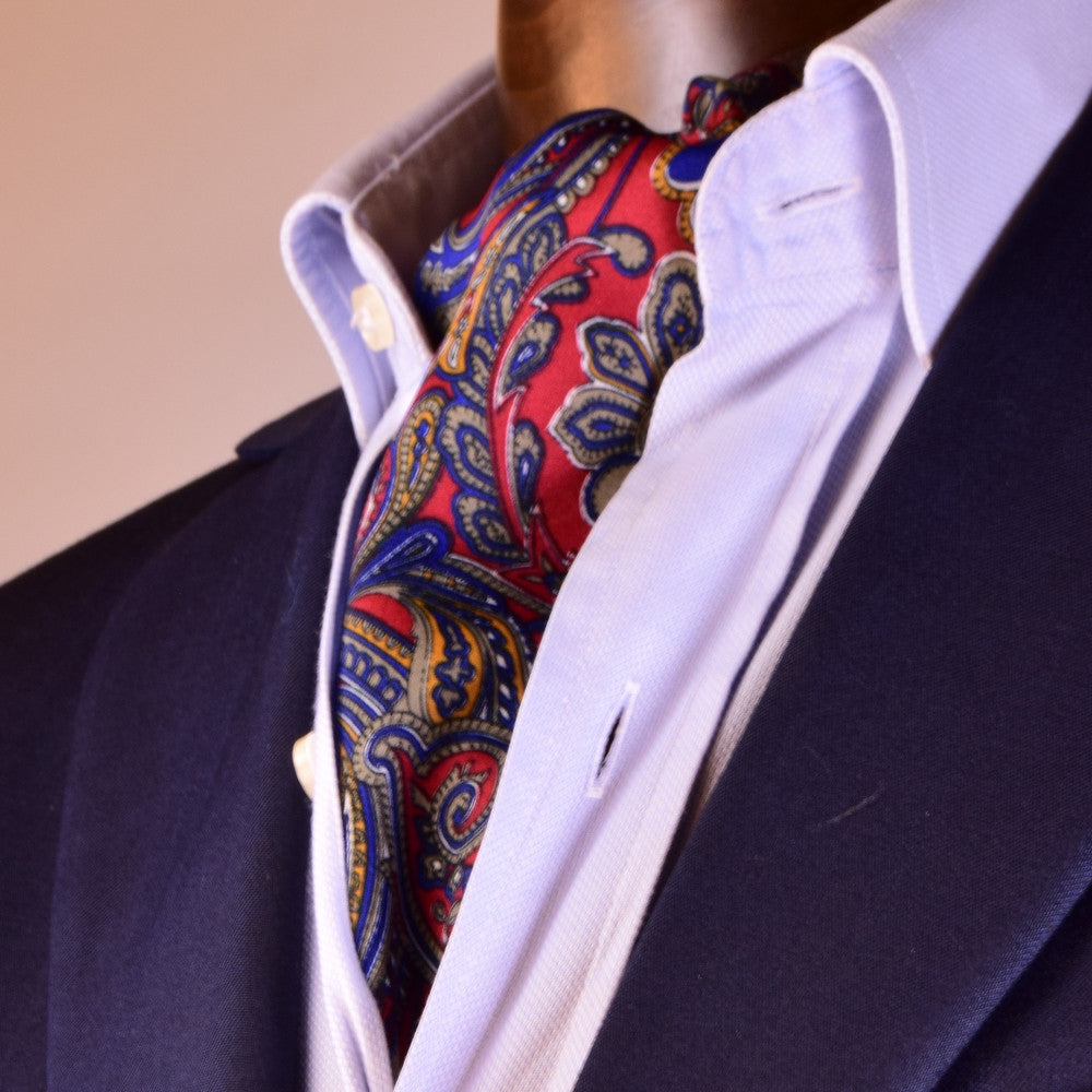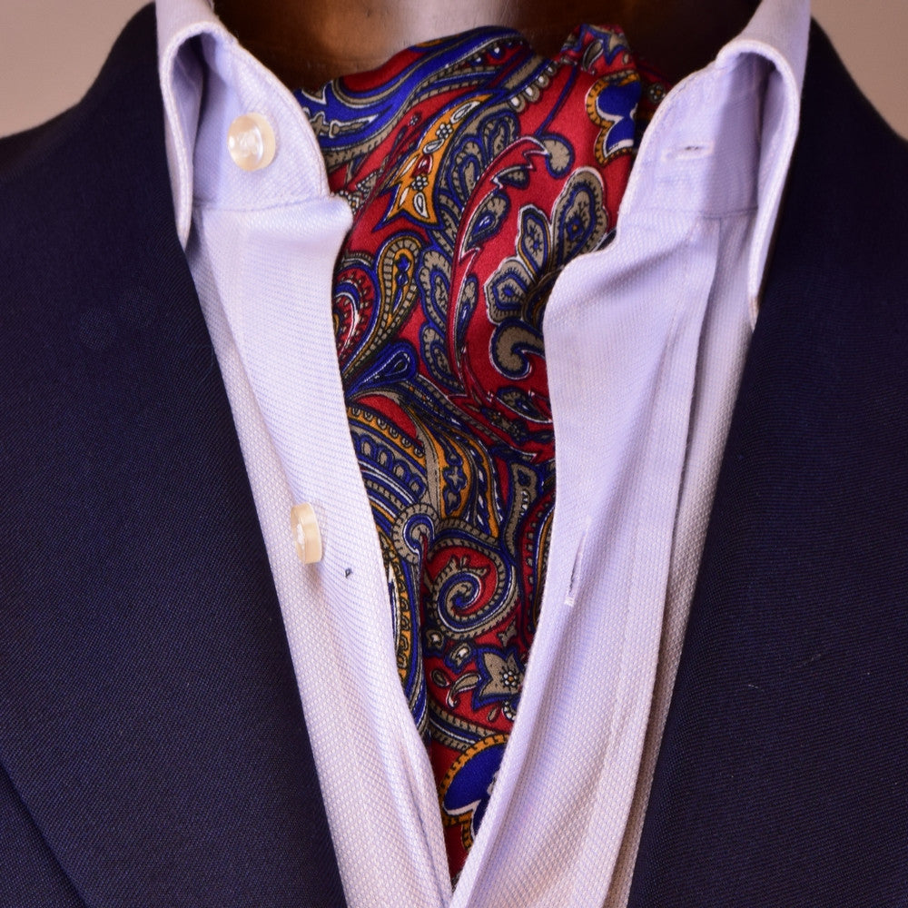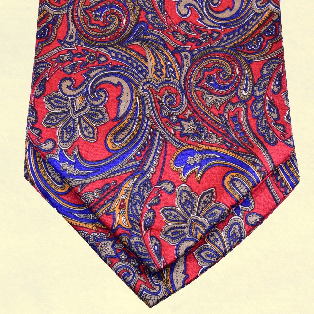 AMARANTH-RED, NEON BLUE PAISLEY, ASCOT TIE MADE IN SILK