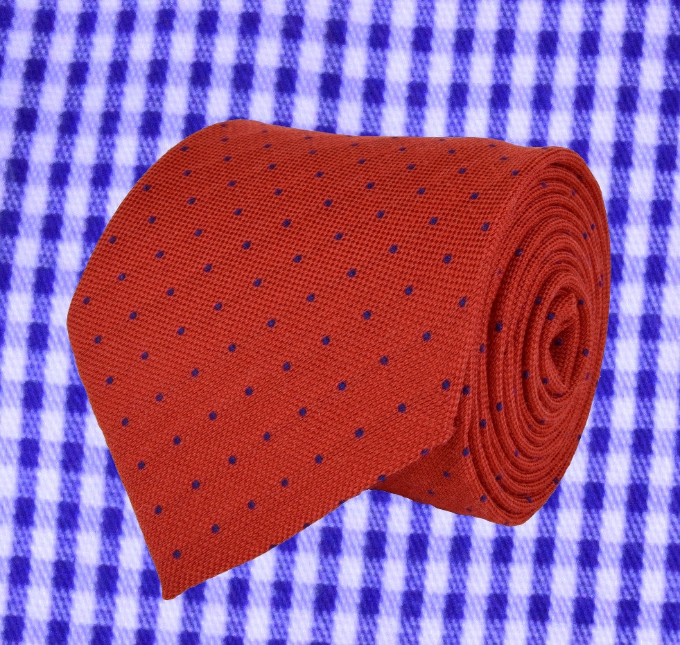 CINNABAR, CHRYSTALLE, PIN DOTS, WOOL NECKTIE HANDMADE IN ITALY LIMITED EDITION (THERE ARE ONLY 30 NECKTIES LIKE THIS ONE IN THE WORLD)