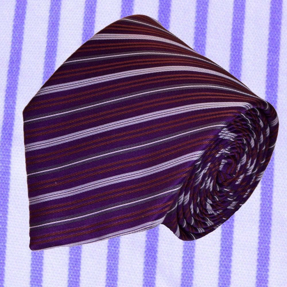 VINTAGE, DARK-BYZANTIUM PURPLE, STRIPED, SILK NECKTIE 3,5 INCHES (9 cm.)