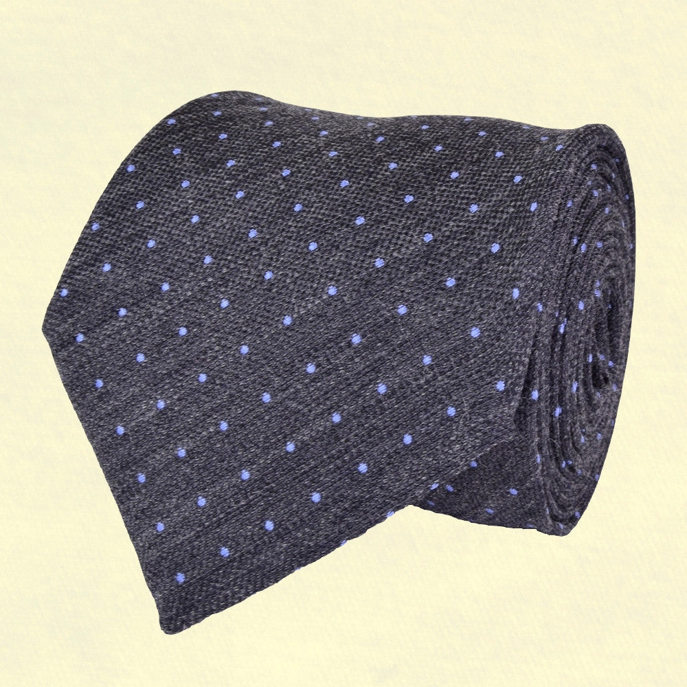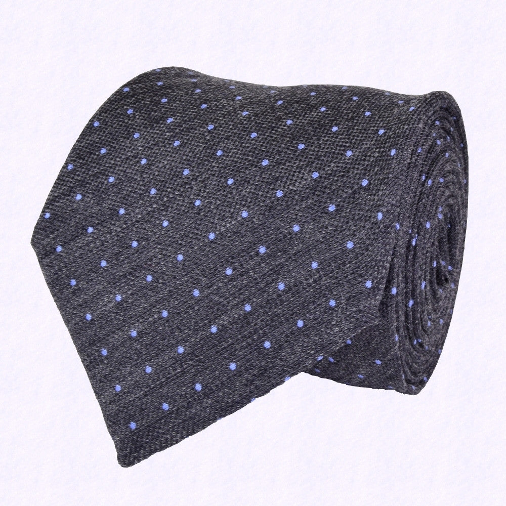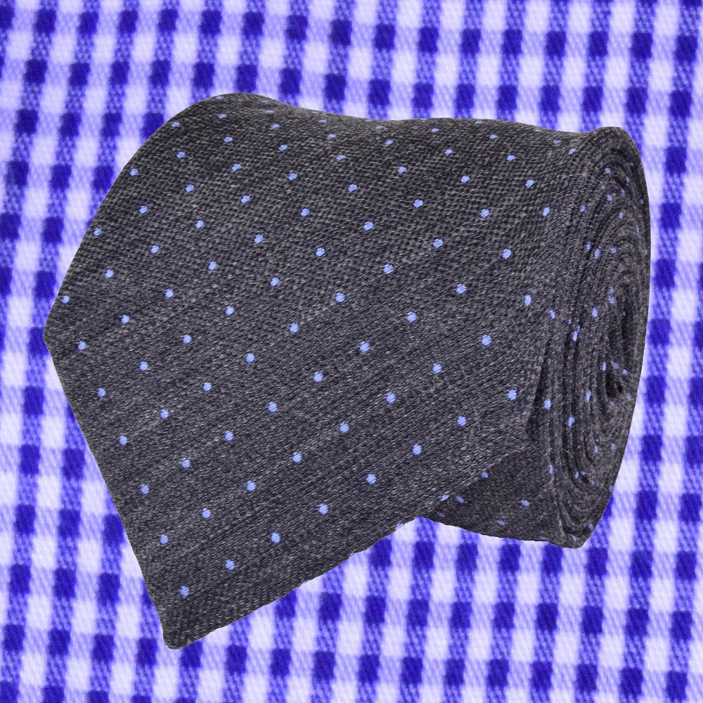 GUNPOWDER-GREY, PERANO-BLUE, PIN-DOTS WOOL LIMITED EDITION NECKTIE HANDMADE IN ITALY (THERE ARE ONLY 30 NECKTIES LIKE THIS ONE IN THE WORLD)