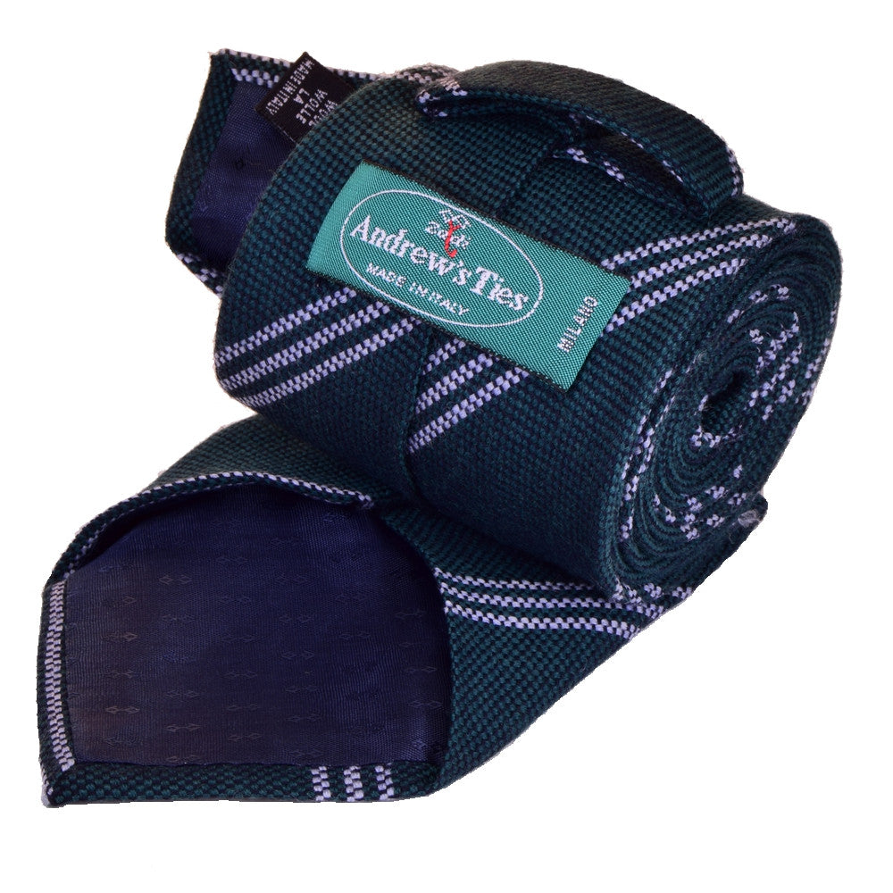 PEARL-GREEN, REGIMENTAL, WOOL NECKTIE HANDMADE IN ITALY BASKET WEAVE FABRIC - CRAVATTA IN LANA REGIMENTAL VERDE PERLA, FATTA A MANO ITALIA, TESSITURA A CANESTRO