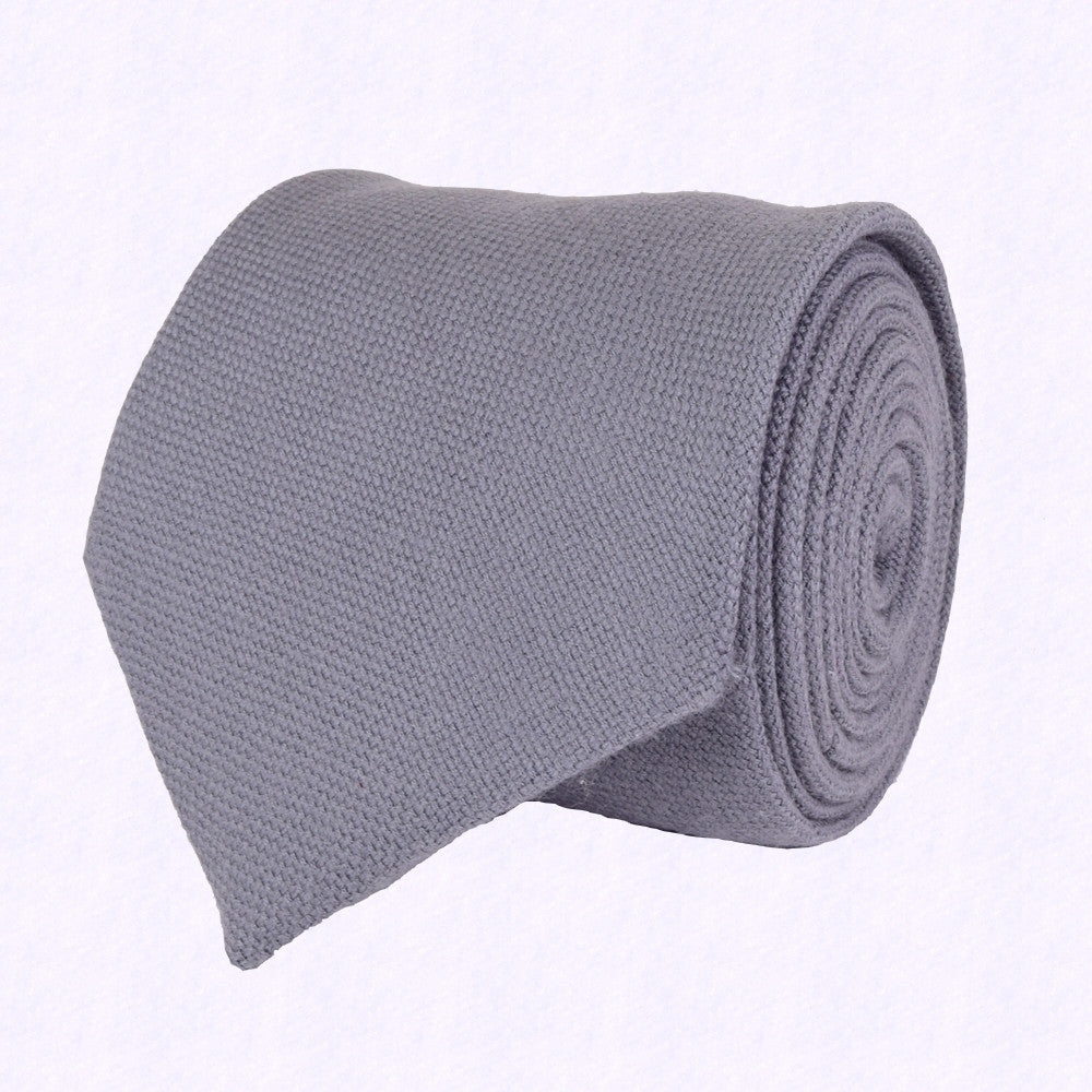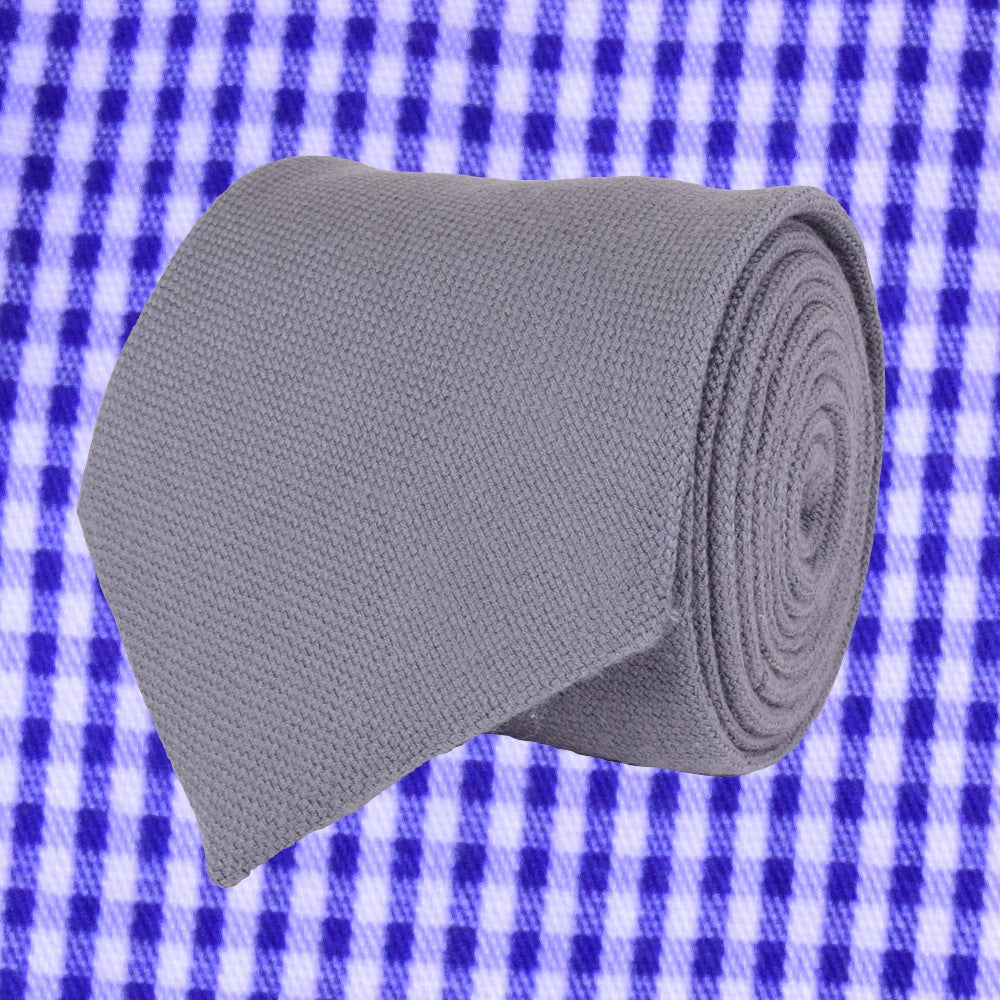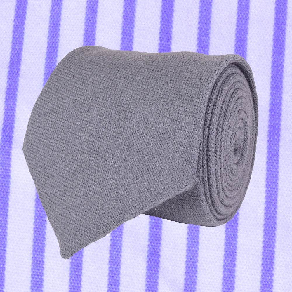 SOLID GREY LIMITED EDITION WOOL NECKTIE, HANDMADE IN ITALY, BASKET WEAVE FABRIC (THERE ARE ONLY 30 NECKTIES LIKE THIS ONE IN THE WORLD)