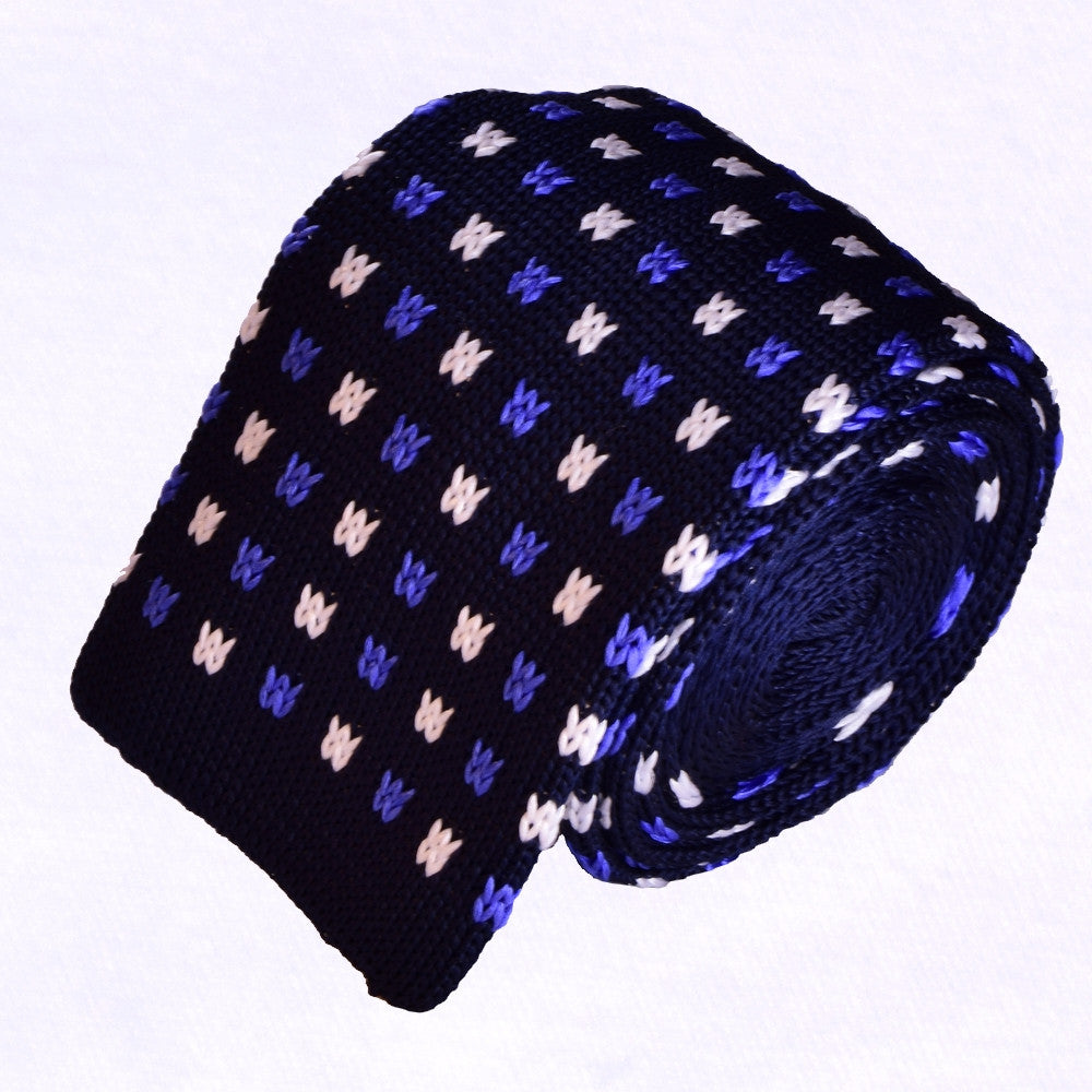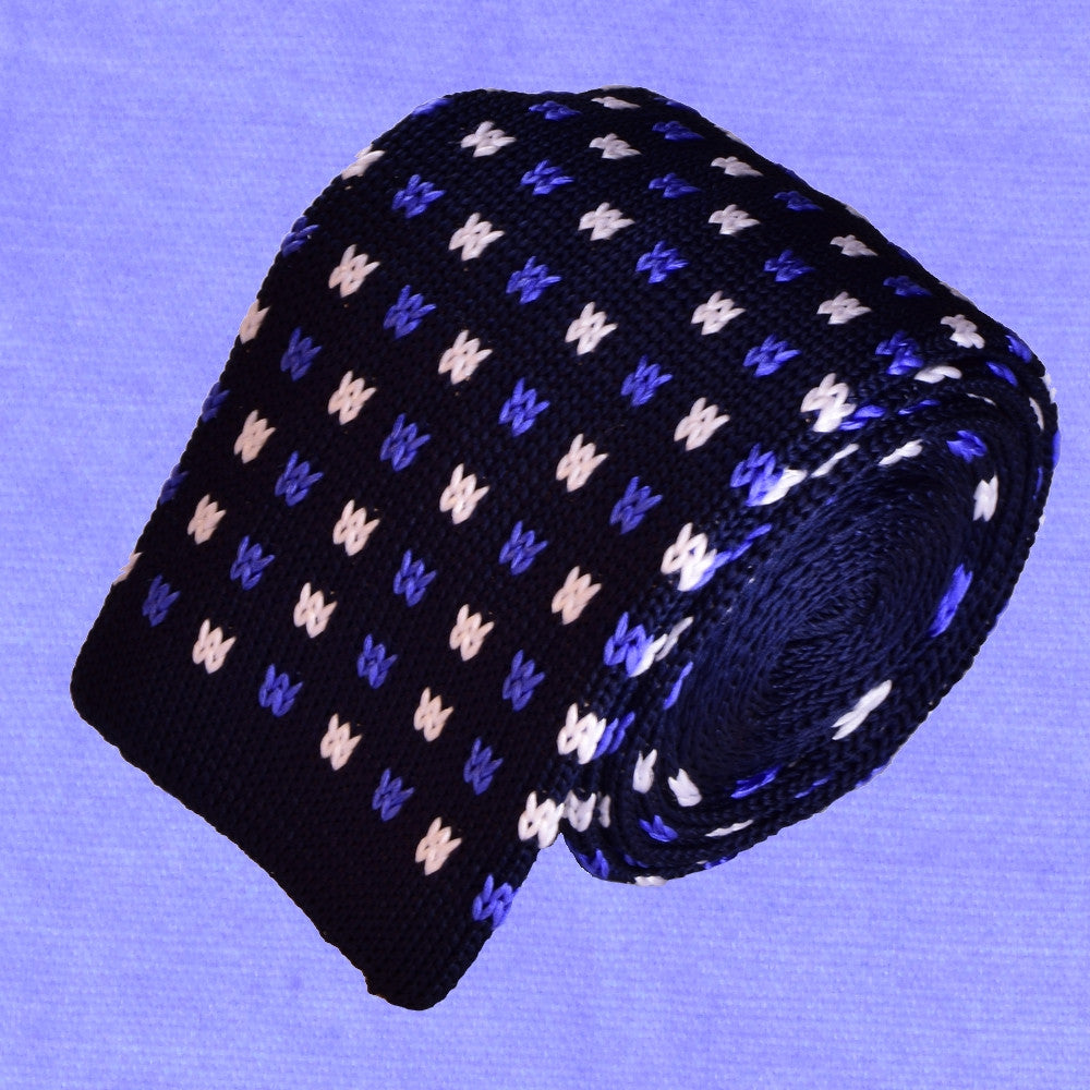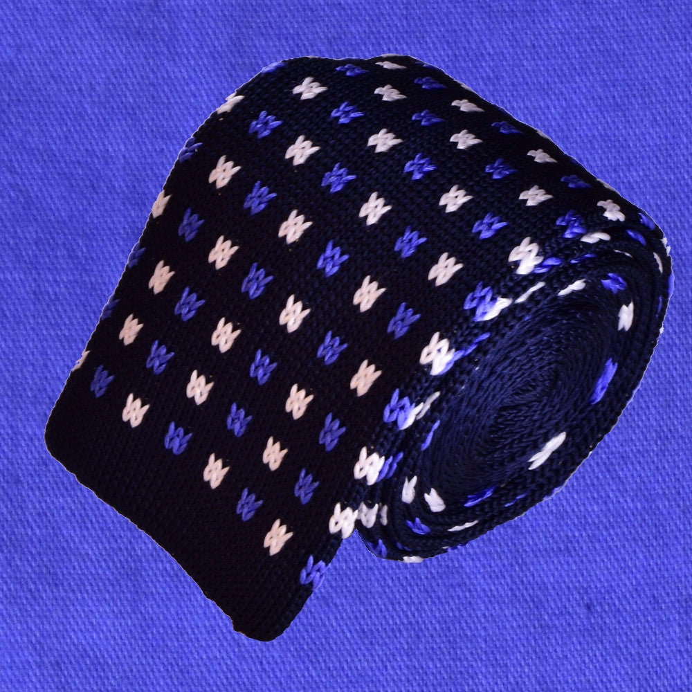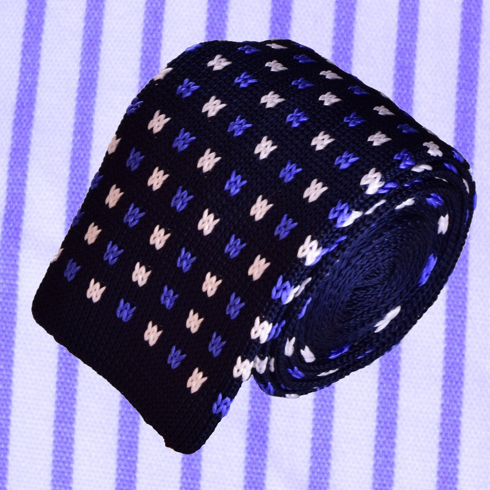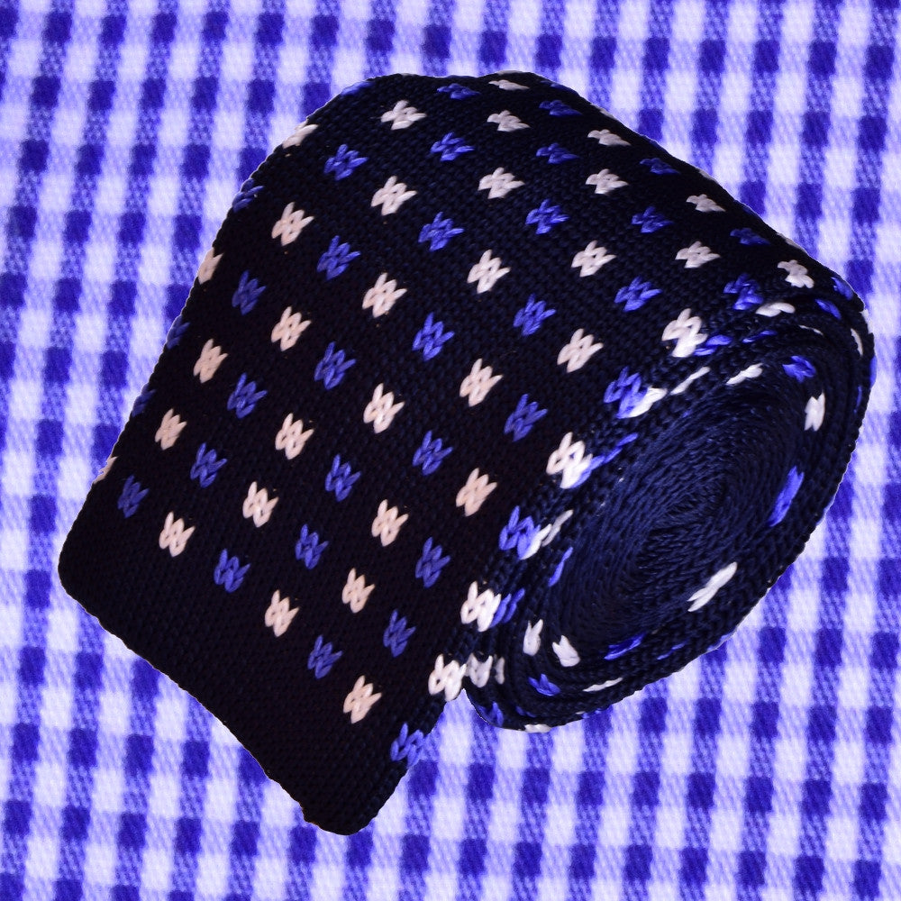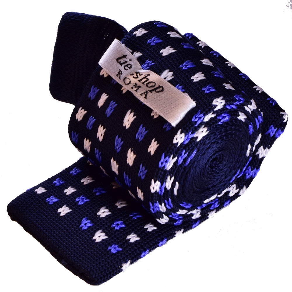 BLUE&WHITE MICROPATTERNS, DARK-BLUE, KNIT SILK NECKTIE