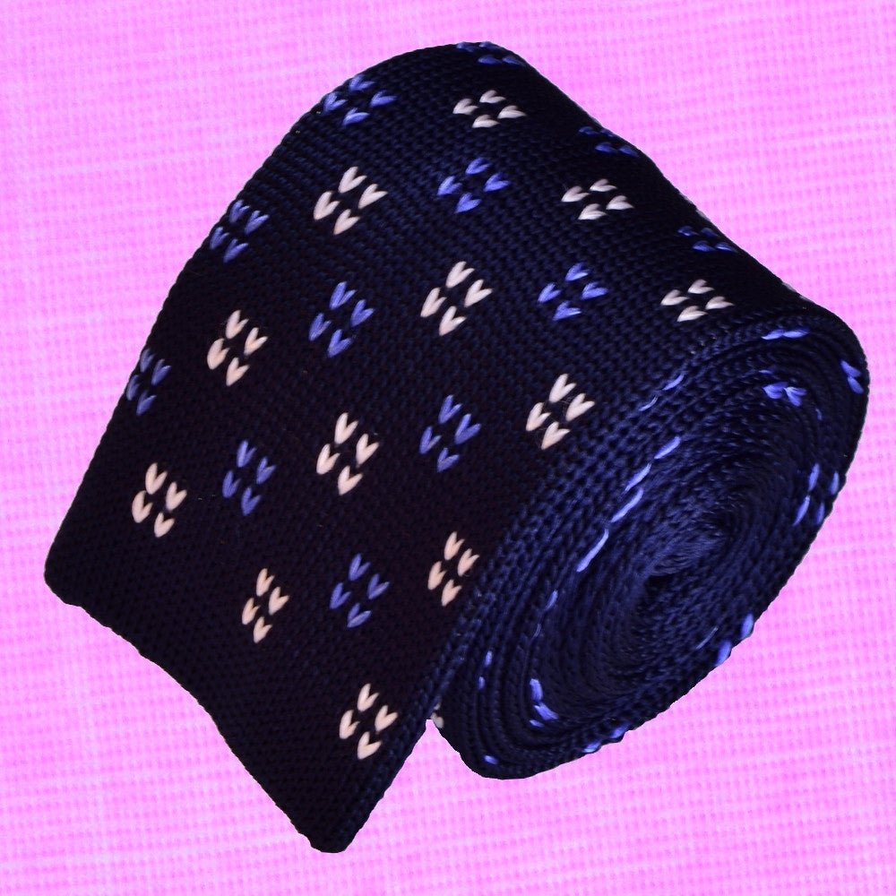 BLUE&WHITE MICROPATTERNS, DARK-BLUE, KNIT SILK NECKTIE