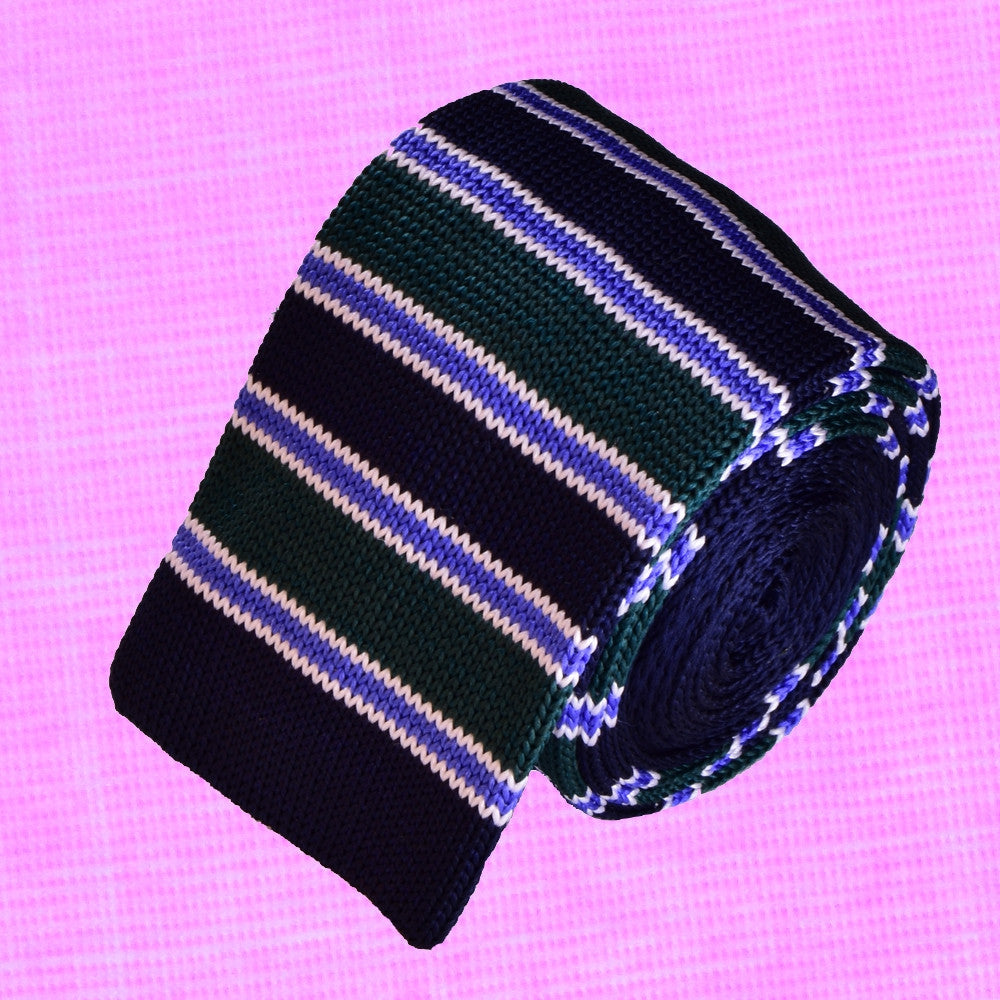 GREEN STRIPED, DARK-BLUE, KNIT SILK NECKTIE