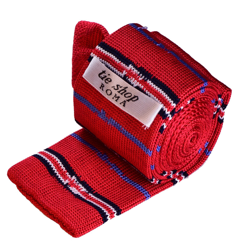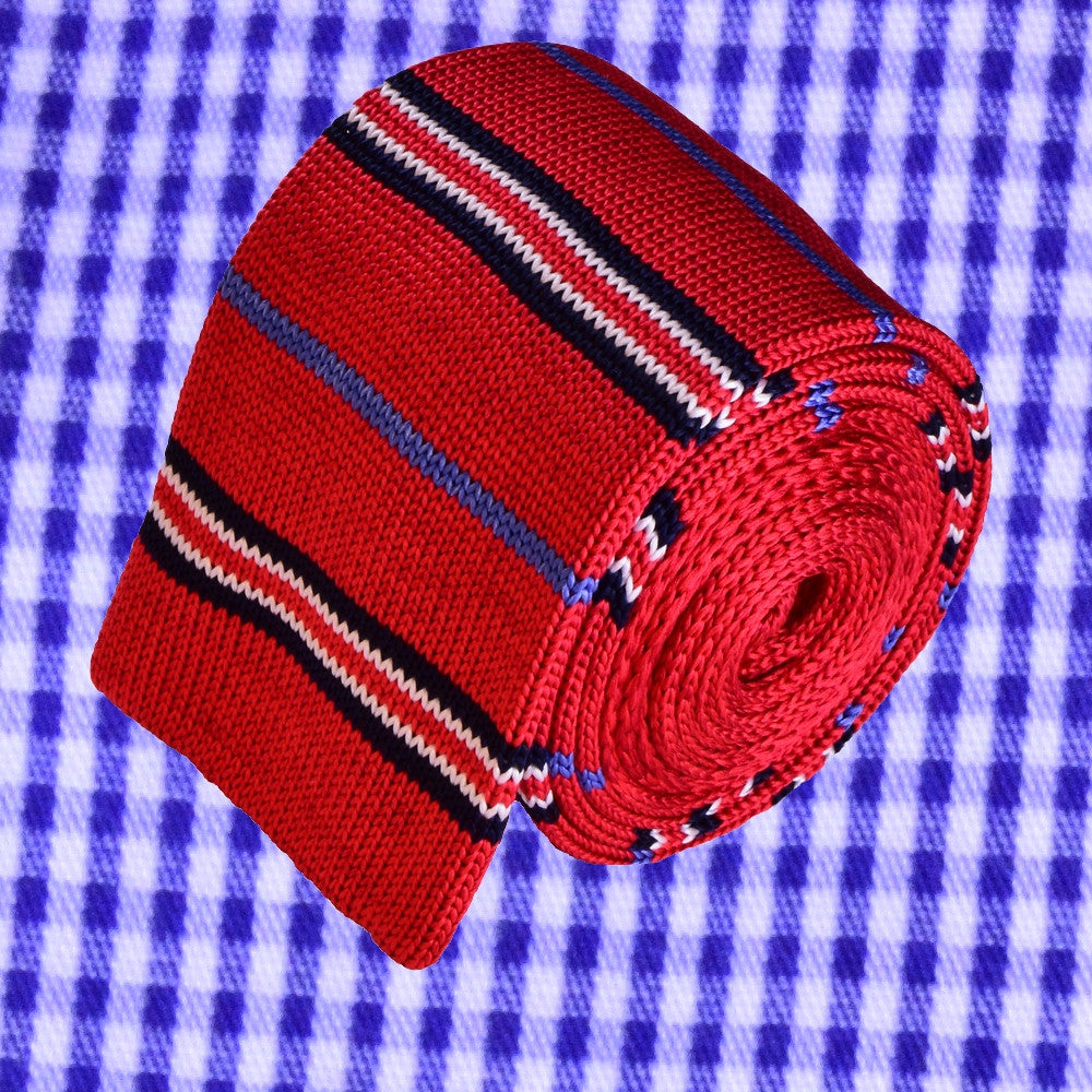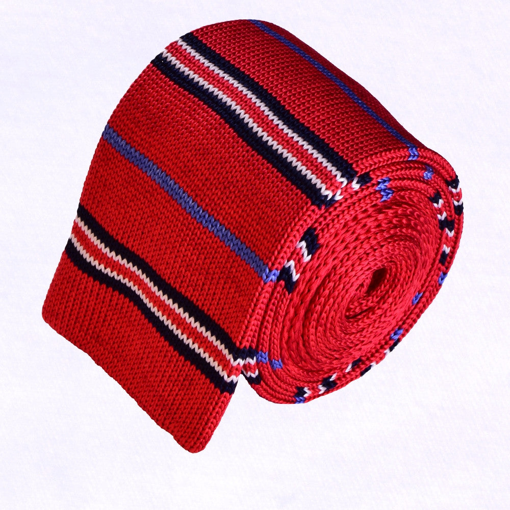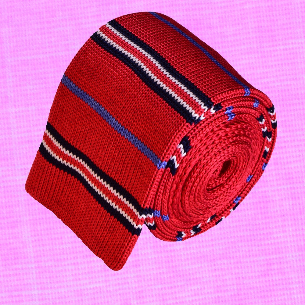 BLACK&WHITE AND BLUE STRIPED, LUST-RED, KNIT SILK NECKTIE