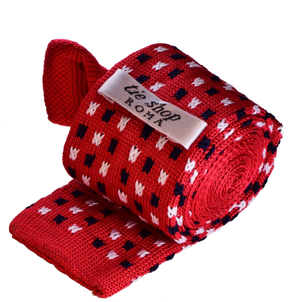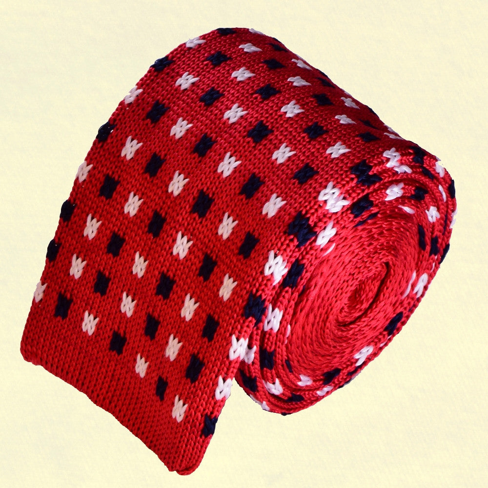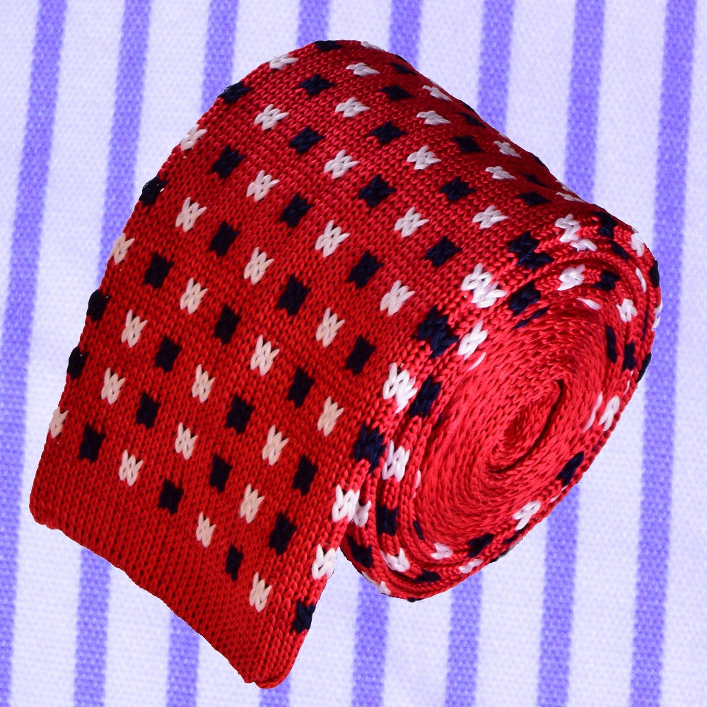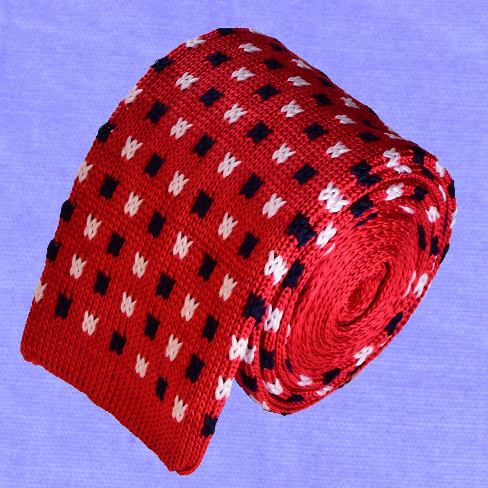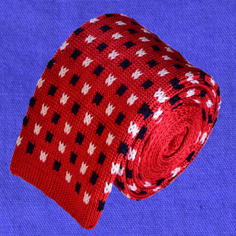 BLACK&WHITE MICROPATTERNS, LUST-RED, KNIT SILK NECKTIE