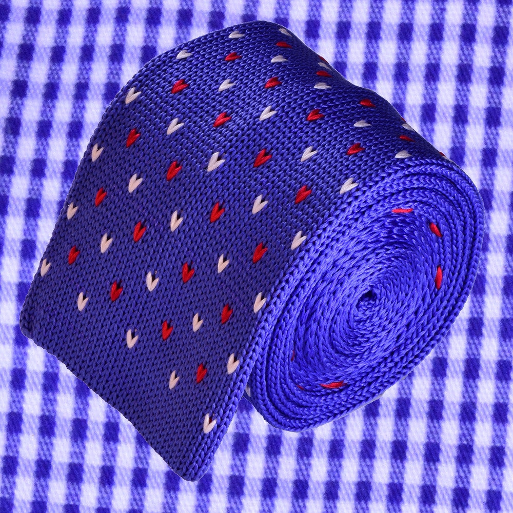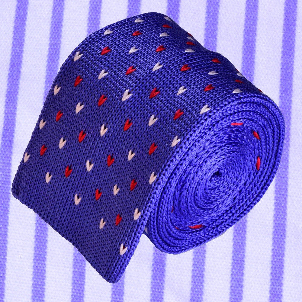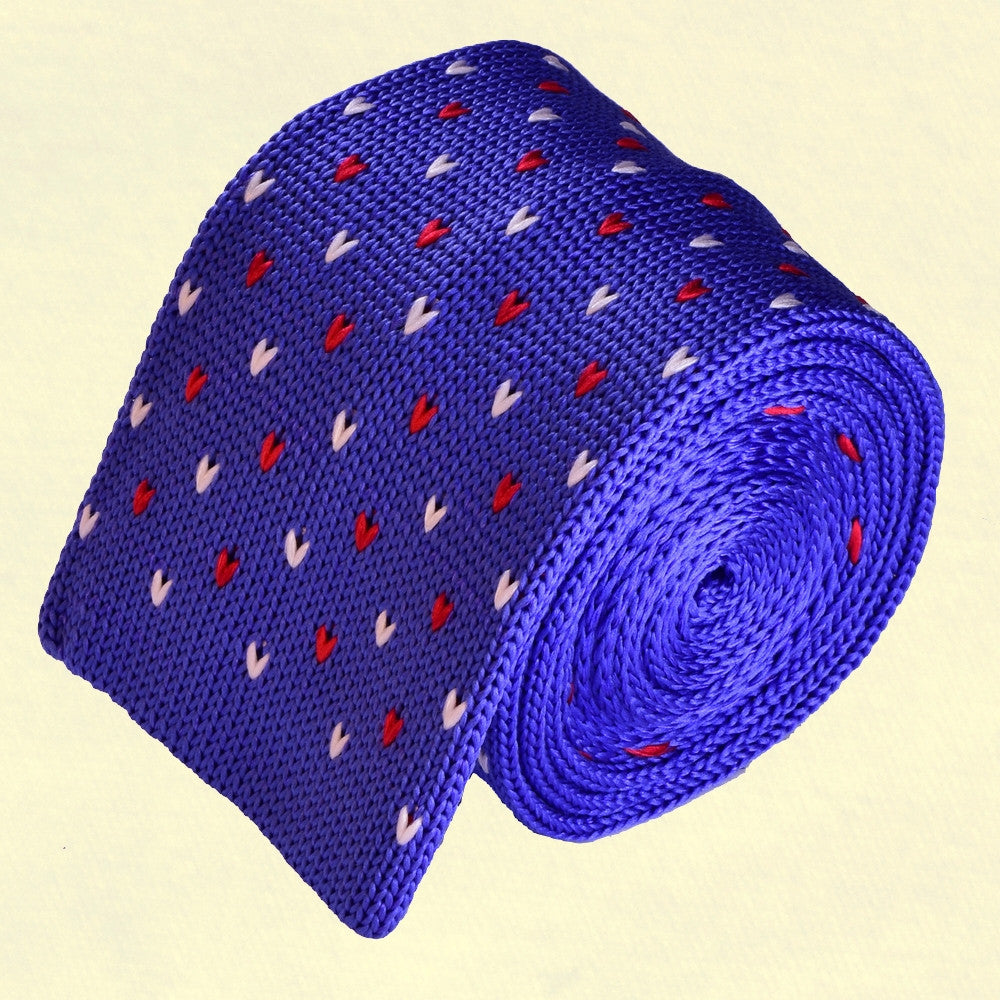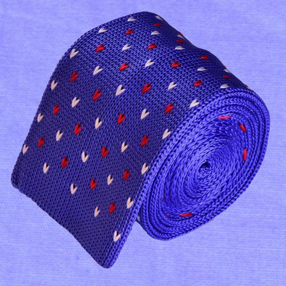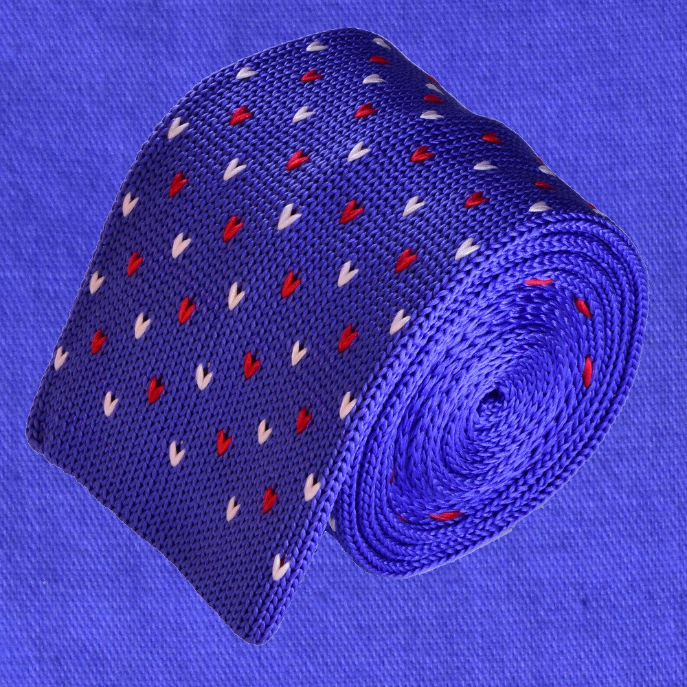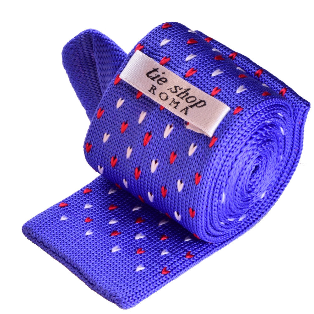 RED&WHITE MICROPATTERNS, ROYAL-BLUE, KNIT SILK NECKTIE