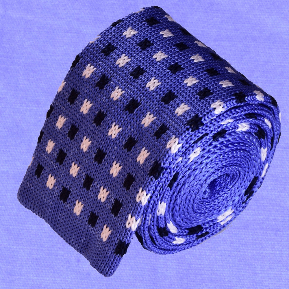 BLACK&WHITE MICROPATTERNS, TUFTS-BLUE,KNIT SILK NECKTIE