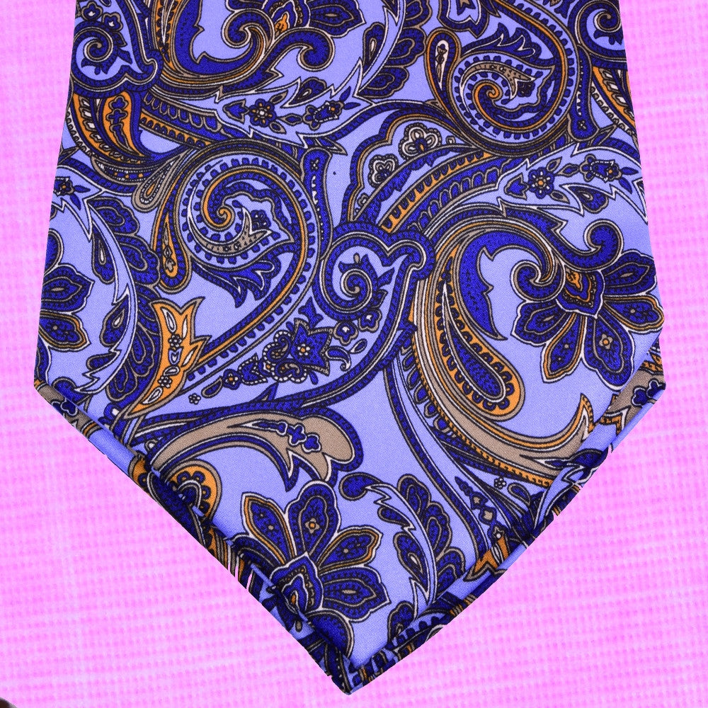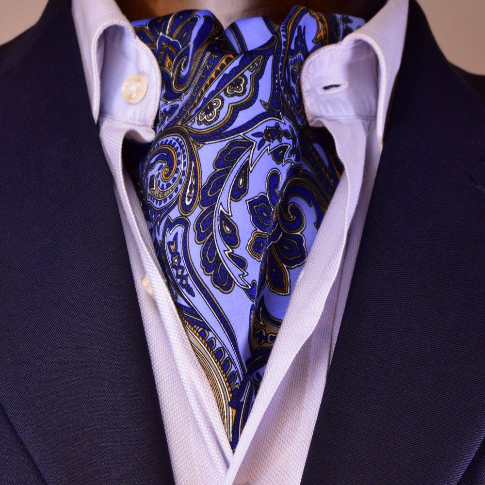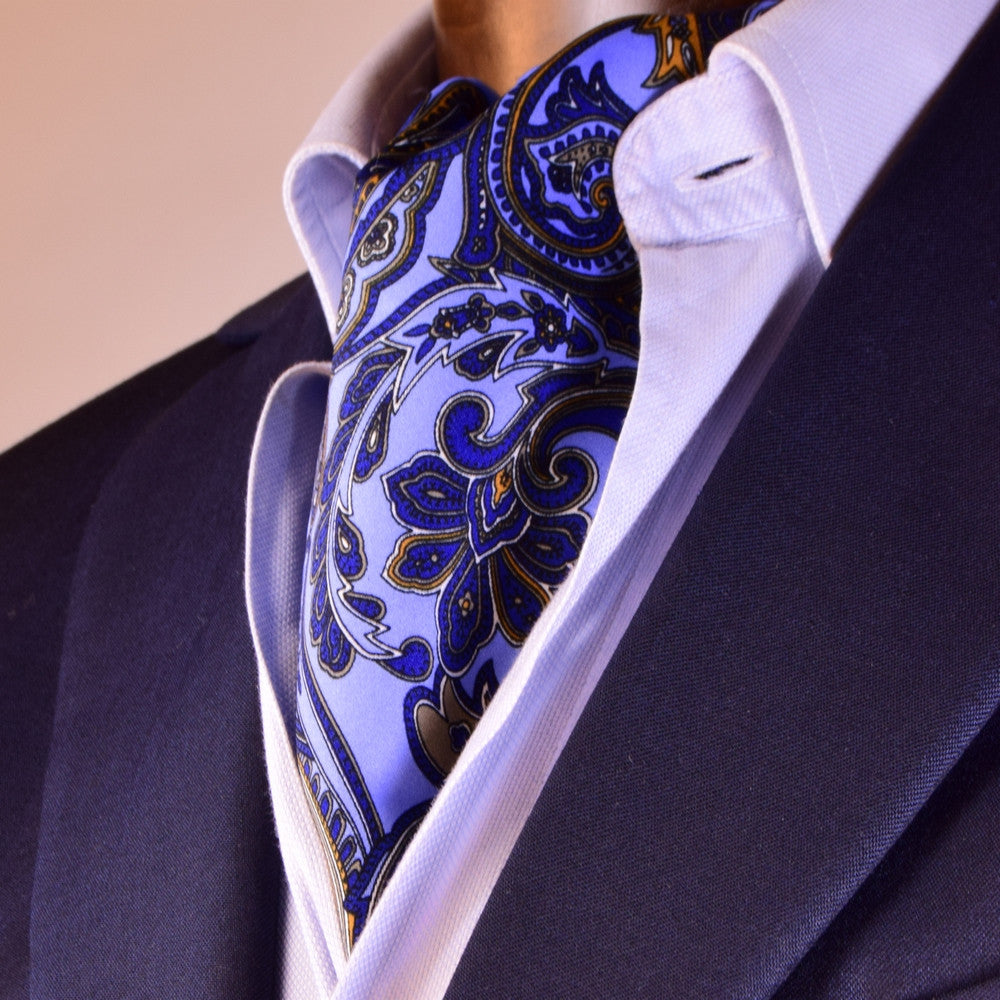 TIESHOPROMA, PERANO-BLUE, PAISLEY, ASCOT TIE MADE IN SILK