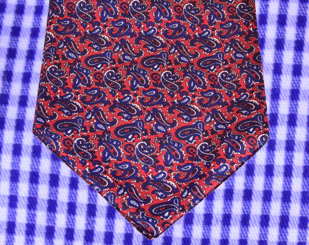 RADICAL-RED, BLUE-PAISLEY, ASCOT TIE MADE IN SILK