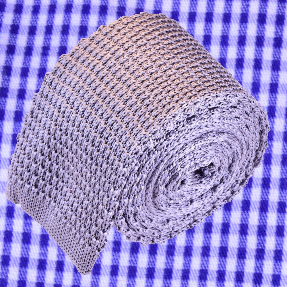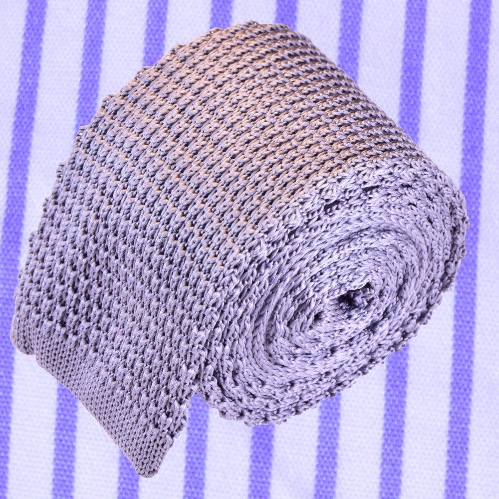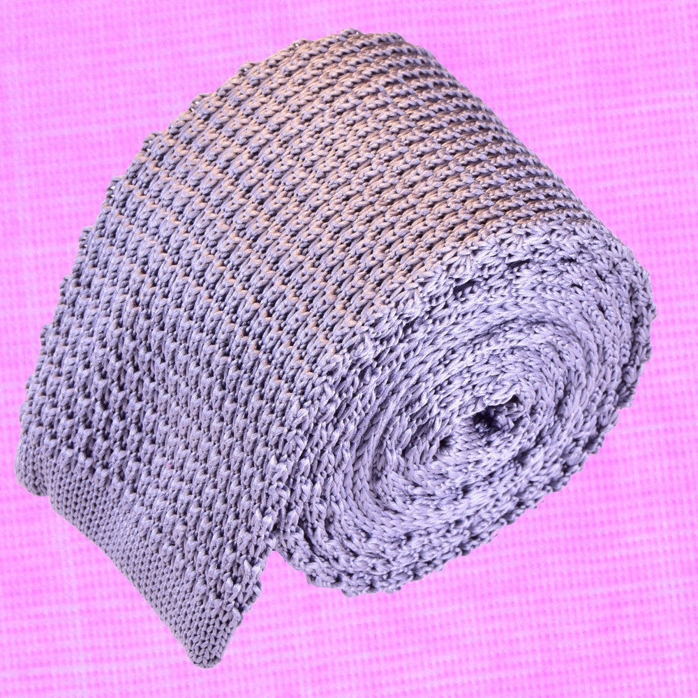 THISTLE-GRAY, SOLID, KNIT NECKTIE MADE IN SILK