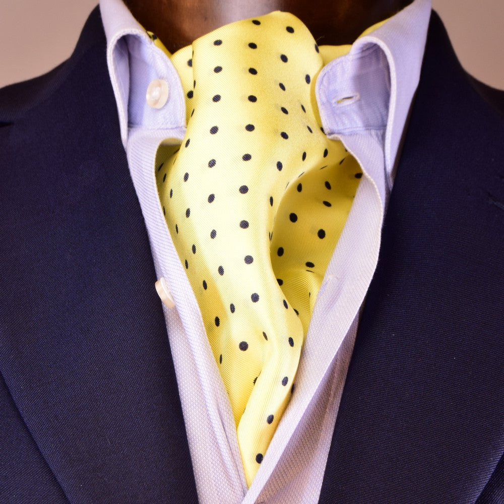 VISVIS-YELLOW, BLACK DOTS, ASCOT TIE MADE IN SILK