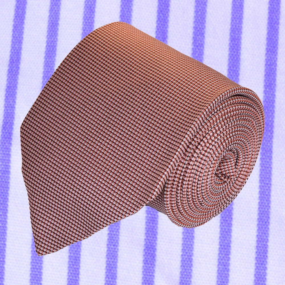 VINTAGE, SALMON-ORANGE, WEAVED SILK NECKTIE
